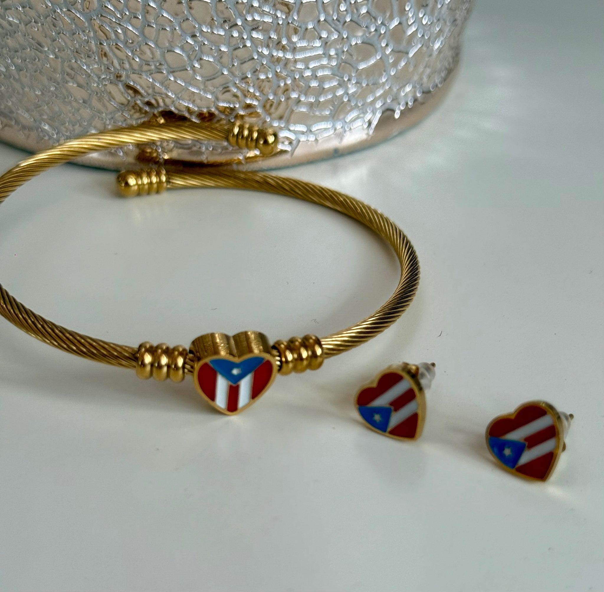 Discover the perfect accessory for any proud Puerto Rican! These Puerto Rico Hearts Earrings boast a vibrant, waterproof design in the iconic colors of the Puerto Rican flag. Made with durable stainless steel and accented with 18K gold, these mini earrings are a symbol of your cultural pride and will stand the test of time.